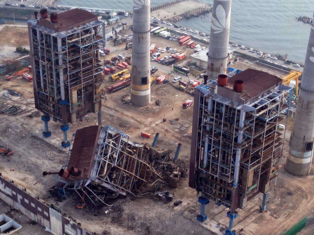 9人の死傷者を出した蔚山市南区(ウルサンシ・ナムグ)の韓国東西(トンソ)発電蔚山火力発電所ボイラータワーの崩壊事故に関連し、中央事故収拾本部(中収本)は、崩壊した5号機付近の4号機及び6号機のタワーを11日正午、爆破解体することを決定した。重量3000トンに達する大型構造物の上部が依然として不安定な状態であるため、火薬設置作業員の安全確保が最大の課題となっている。