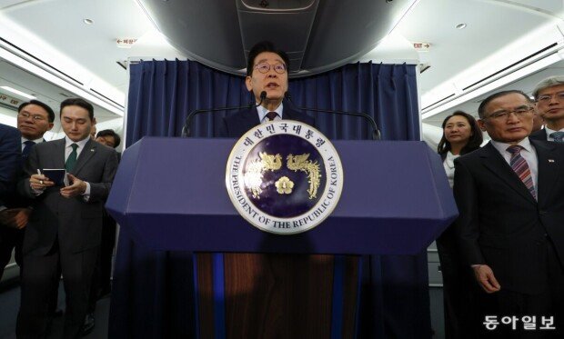 이 대통령은 이날 튀르키예 앙카라로 향하는 대통령 공군1호기에서 기자간담회를 열고 “국가 간 관계라는 게 이제는 서로 떼어놓고 따로 살 수 없는 상황”이라며 “국제질서를 존중받는 모두가 함께 잘 사는 그런 다자주의 체제로 최대한 잘 만들어가야 한다”고 했다. 그러면서 “자유무역 질서라고 하는 것이 결국은 모든 국가가 함께 살 수 있는 거의 유일한 길이기 때문에 결국 그 길로 갈 수밖에 없을 것”이라고 덧붙였다.