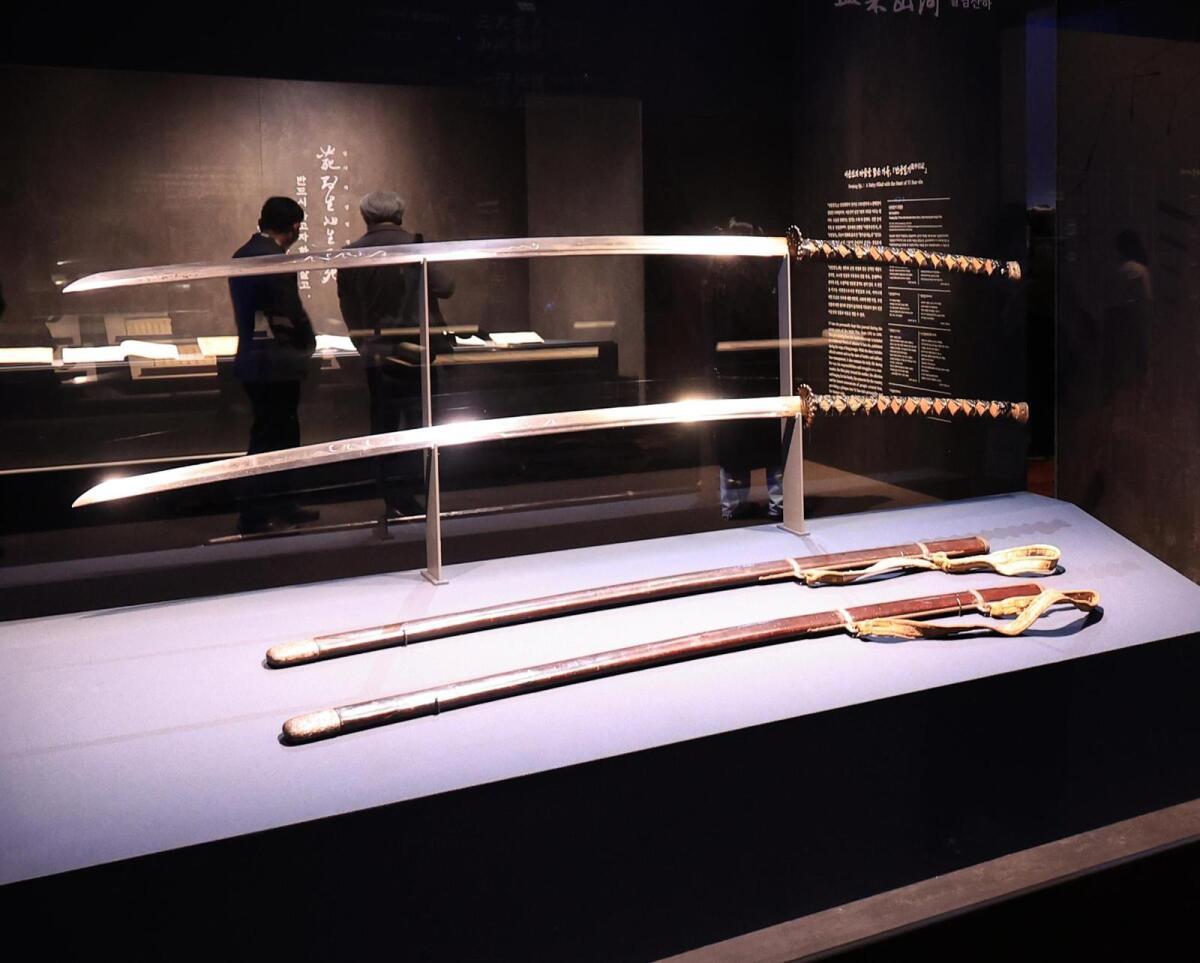 「乱中日記」と忠武公が記した手紙をまとめた「書簡帖」や「壬辰状草」などの国宝6件や宝物39件を含む計258件を紹介する特別展は、李舜臣将軍をテーマにした展示の中で過去最大規模だという。中でも長さ約2メートルに達する「李舜臣大剣」は、2023年に国宝に指定された後、初めて一般公開された。