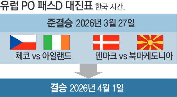 欧州POパスDは、デンマーク(FIFAランキング21位)と北マケドニア(65位)、チェコ(44位)とアイルランド(59位)が対戦し、勝者同士が来年4月1日に一発勝負でW杯本大会A組に入るチームを決める。どの国がPOを突破するかによってA組の難度が大きく変わる可能性がある。