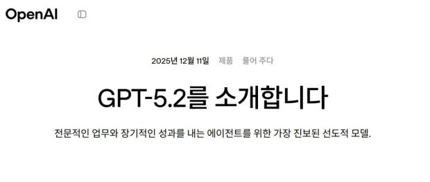 구글의 거센 추격을 받고 있는 오픈AI가 11일(현지 시간) 새로운 인공지능(AI) 모델 ‘GPT-5.2’를 공개했다. 오픈AI는 일부 기능에서 GPT-5.2가 구글의 ‘제미나이 3 프로’를 능가했다고 밝히며 구글과의 ‘AI 경쟁’에서 선두 자리를 지키겠다는 의지를 강하게 내비쳤다.
