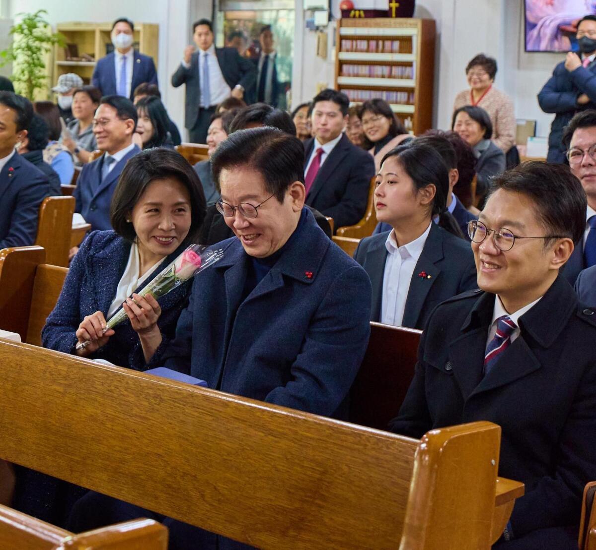 李在明(イ・ジェッミョン)大統領は25日、クリスマスを迎え、妻の金恵京(キム・ヘギョン)氏とともに、自身の選挙区だった仁川市桂陽区(インチョンシ・ケヤンク)にあるヘイン教会と明洞(ミョンドン)聖堂を訪れ、礼拝とミサに参列した。特にヘイン教会の訪問には、来年6月の桂陽乙補欠選挙への出馬が取り沙汰されている大統領室のキム・ナムジュン報道官が同行し、事実上の「力添え」ではないかとの見方が出ている。