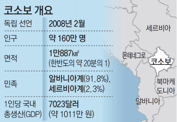 그간 코소보는 세르비아의 자치 지역으로 있다가 2008년 독립했다. 이슬람교를 믿는 알바니아계가 90% 이상을 차지하지만, 북부 세르비아 접경 지역은 기독교를 믿는 세르비아계가 다수다. 1991년 옛 유고슬라비아 연방이 해체된 뒤 세르비아는 1998년과 1999년 코소보의 알바니아계 분리주의 세력을 학살했다. 이른바 ‘코소보 분쟁’으로 불리는 당시 사태는 20세기 유럽 최악의 분쟁으로 꼽히며 1만3000여 명이 희생됐다.