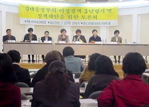 이어진 토론에서 한국여성개발원 김양희 사회문화연구부장은 "지난 3년동안 여성특별위원회, 6개부처 여성정책 담당관실, 청와대의 여성전담 비서관까지 과거 어느때보다 여성정책 추진의 기반이 좋았다"며 "그러나 과연 3자간 협조 및 연대가 충분하였는지는 아쉬움이 남는다"고 평가했다.