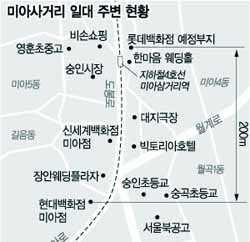 이곳에는 재개발 재건축으로 대규모 아파트단지가 속속 건립되고 있는 데다 신세계와 현대 등 대형 백화점이 이미 들어서 있다.