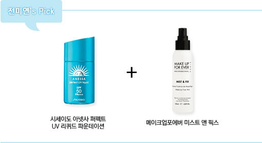 "땀과 물에 잘 지워지지 않는 UV 전용 리퀴드 파운데이션을 추천한다. 지속력을 높이기 위해 손으로 바르는 것보다 라텍스 스펀지를 사용해 탄력 있게 두드려줄 것! 텍스처가 얇게 발려 투명한 피부 표현이 가능하고 뭉쳐서 얼룩덜룩해지는 것을 방지할 수 있다. 마무리로 픽서 기능을 지닌 미스트를 뿌리면 메이크업이 고정되는 효과가 있으니 빼먹지 말 것!"