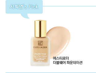 “워터프루프 메이크업을 위해 가장 많이 사용되고 있는 제품. 일반적인 워터프루프 파운데이션은 제형이 매트하고 피부를 건조하게 만들지만, 더블웨어 파운데이션은 촉촉한 제형에 커버력도 우수하고 물에도 강하다!”