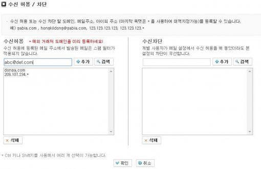 만약 해외의 특정 회사와 거래를 한다면 해당 회사의 도메일을 미리 수신허용 목록에 등록해두는 것도 좋은 방법이다. 반대로 수신을 원하지 않는 특정 이메일 계정이나 도메인, 혹은 IP 대역을 설정해 두는 것도 가능하다. 방법은 수신 허용과 같다.