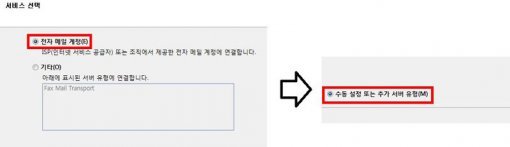 우선 아웃룩을 실행한 후 상단의 ‘파일’을 클릭해 계정정보를 연 뒤 ‘계정추가’를 선택하자. 그 후 ‘전자 메일 계정’을 선택하고 ‘다음’을 클릭, 본격적인 계정 설정을 시작하자. 여기선 우선 ‘수동으로 서버 설정 또는 추가 서버 유형 구성’을 선택한다.