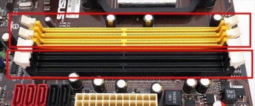 그리고 듀얼채널 구성을 하려면 메모리 2개를 꽂을 때, 그 2개의 메모리 슬롯이 한 쌍의 채널에 해당하는 지를 꼭 확인해야 합니다. 요즘 나오는 메인보드의 램 슬롯은 색상으로 구분을 해줍니다. 쉽게 말해서, 듀얼채널 구성을 하려는 2개의 메모리는 각각 같은 색상의 램 슬롯에 꽂아주면 된다는 거죠.이를 착각하면 메모리 2개를 꽂아도 듀얼채널이 활성화되지 않을 수 있습니다.