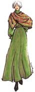단색 원피스 위에는 무늬있는 스카프가 보이는 면을 밖으로 해서 숄을 두르고 무늬가 있는 옷을 입을 때는 반대쪽 면을 이용한다. 이밖에 가장자리 끝단을 모피로 장식한 숄도 풍성하고 고급스런 느낌을 자아내 겨울에 적당하다.