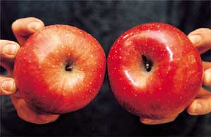 설 선물 사과세트는 ‘부사’가 보통이죠. 다른 품종에 비해 과즙이 많고 아삭거리는 맛이 일품이어서 한국 사람들이 가장 많이 찾는 사과입니다. 부사는 배와 고르는 방법이 정반대죠.