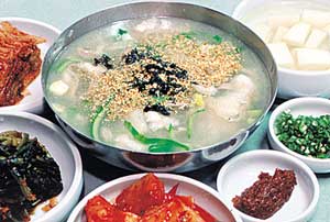 종업원은 안보이고 주방은 김씨, 홀은 안씨, 밤새 감자깍기는 부부공동의 몫이다. 국수는 주문 즉시 끓인다. 단체손님 들이닥쳐도 마찬가지다. 국수도 국수지만 곁다리로 내는 동치미 김장김치 갓김치 깍두기도 내력을 알면 맛이 훨씬 더하다. 배추 무 모두 농약 안치고 직접 키워 낸 것이고 메밀은 이 고장것을 쓴다. 고춧가루 역시 직접 말린 태양초. 그러나 진짜 비결은 산수경계 좋은 정선 물맛이라고 했다.