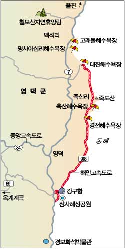 ▽들를 만한 곳 △해안드라이브 코스〓삼사해상공원∼강구항∼918번지방도로(해안도로)∼축산∼대진해수욕장. △멋진 해변〓‘명사 20리’라 불리는 길고 넓은 해변(고래불, 대진해수욕장)이 있다. 대진해수욕장∼7번국도∼병곡.