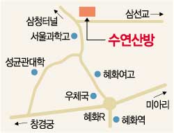 ▽수연산방(壽硯山房)〓혜화동로터리에서 서울과학고를 지나 오른편 성북 2동 동사무소 옆쪽으로 너른 담벼락이 인상적인 곳.