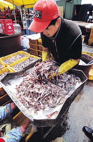 포구의 길가에서는 아침에 잡힌 생멸치를 즉석에서 굵은 소금과 비벼 비닐포대에 넣어 젓갈용으로 판매했다. 이날 가격은 3만5000원(25㎏들이). 2만5000원쯤 해야 적당한데 멸치잡이가 시원찮아 그렇단다. 염씨는 명함(염씨네 멸치젓·051-722-9321)을 주며 아침에 전화해보고 가격쌀 때 오라했다. 물론 택배도 가능하다고.