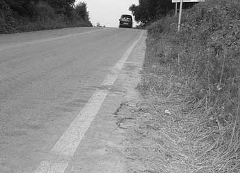 사고가 난 갓길은 아주 위험한 길이다. 편도 1차로에 불과한 지방도의 갓길치고 위험하지 않은 곳이 있을까마는 그 갓길은 특히 더 위험했다. 법원읍쪽에서 넘어오는 차량은 마을 앞까지 내리막길을 한참 달려야 한다. 마을 앞에서는 갑자기 도로 사정이 바뀌어 오르막길이 시작되는데 오른쪽으로 산을 끼고 상당히 휘어져 올라간다. 차량이 내리막길을 내려오던 가속을 그대로 유지한 채 오르막길을 오른다면 운전자는 커브길에서 반대 차로로 내려오는 차와 갑자기 마주칠 수 있는 곳이다. 사고가 난 지점은 바로 그 오르막 커브의 갓길이다. 게다가 산을 깎은 바로 아래쪽에 자리잡고 있어 더 피할 여지도 없는 곳이다.