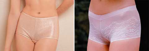 이럴 때는 아슬아슬한 티(T)팬티나 엉덩이를 감싸주는 레이스팬티보다 드로어즈 스타일의 팬티나 골반에 걸쳐 입는 사각형 거들이 더 기능적이다. 삼각모양의 팬티라인을 없애주고 착용시 더 안정감이 있기 때문이다.