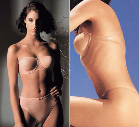 어깨와 등 부분을 과감하게 드러내는 ‘홀터넥’이나 속살이 많이 비치는 의류를 입을 경우를 대비한 오스트리아 란제리브랜드 ‘월포드’의 ‘네이키드 브라’처럼 투명소재의 실리콘을 사용한 아이템이 역시 인기다.