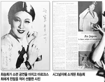 그는 프랑스 파리 신문 박물관에서 일본의 대표적인 무희로 최승희를 2쪽에 걸쳐 소개한 ‘시그널’ 1942년 2월호를 비롯, 1947년 구 소련에서 살풀이 춤을 공연하는 기록필름과 일본 유학 직전에 찍은 사진, 외국 공연에서 홍보용으로 촬영한 사진 등도 입수해 일부를 처음으로 공개했다.