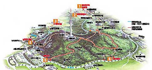 (1) 장충체육관에서 출발해 국립극장을 지나 남측순환도로를 따라 오르는 길이다. 차로 갈 수 있는 유일한 산책로이기도 하다. 도로 중간쯤 걷다 보면 산 아래로 한강이 펼쳐지는 곳이 나온다. 날씨가 맑으면 시원한 한강 너머 강남이 한눈에 들어온다. 야경도 권할 만하다. 인도와 차도 구분이 선으로만 돼 있어 조심해서 걸어야 한다. 건강한 성인 걸음으로 1시간∼1시간 10분 정도 걸린다. 지하철 3호선 동국대 입구역에서 내린다. 차를 이용할 경우 승용차의 통행료는 1시간에 500원, 30분 초과할 때마다 500원이다.