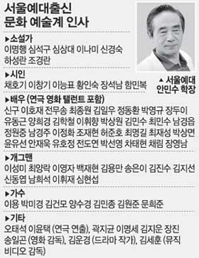 서울예대 졸업생은 2002년 2월 현재 1만5930명. 그중 현역 문화예술계 인사가 약 1500∼2000명에 이른다. “니들이 게 맛을 알아?”라는 유행어를 만들어 낸 탤런트 신구를 비롯, 공연계의 거물급 연출가 오태석 이윤택, 소설가 신경숙 하성란, 시인 채호기 함민복 등이 ‘서울예대 인프라’를 형성하고 있다 .