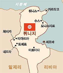 북아프리카의 마그레브(프랑스의 지배를 받았던 이슬람국가들로 튀니지 모로코 알제리가 포함된다. ‘해지는 서쪽’이라는 뜻) 3국 중 하나인 튀니지는 우리나라에서 비행기로만 꼬박 하루가 걸리는 곳이다. 직접 연결편이 없기 때문에 파리, 프랑크푸르트 등을 경유해 2∼3시간 다시 비행기로 이동해야 한다. 수도는 튀니스. 오랜 식민지배를 거쳐 경제부흥기를 맞고 있지만 아직도 튀니스 시가지는 1960∼70년대 서울의 모습이다.