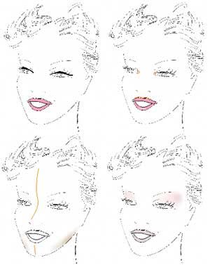 에를랑씨가 착시현상을 이용해 작은 눈, 튀어나온 광대뼈 등을 보완하는 이른바 ‘성형 메이크업법’을 제안했다.