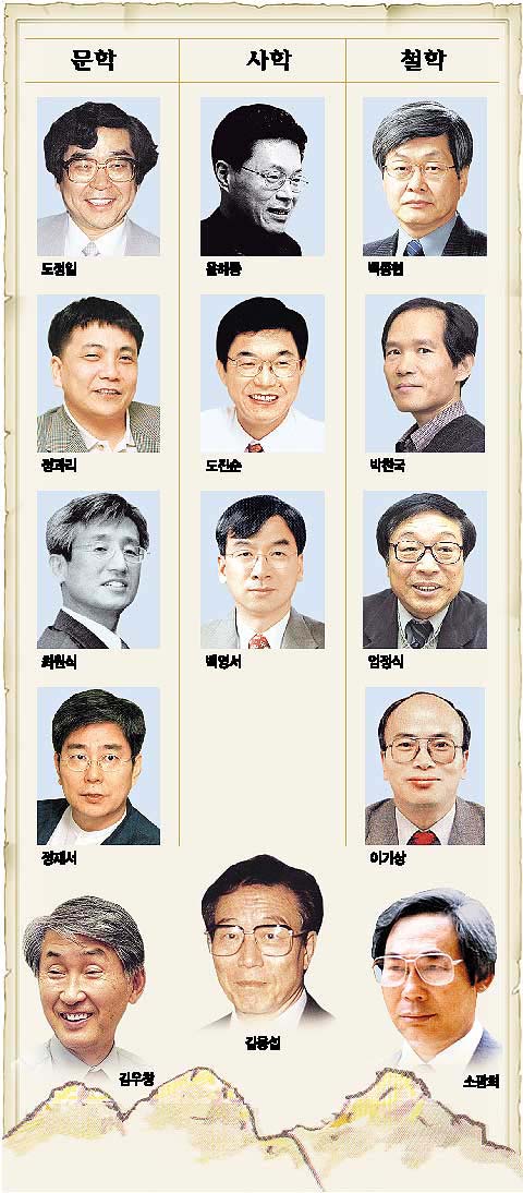 문학=서울대 김윤식(국문학), 백낙청(영문학), 고려대 김우창(영문학), 연세대 이상섭(영문학) 교수의 퇴진은 문학계의 ‘큰 손실’이다. 물론 이들은 대학을 떠나서도 연구 및 지적 활동을 멈출 것으로 보이지 않아 정년 이후의 학문적 성취가 기대된다.