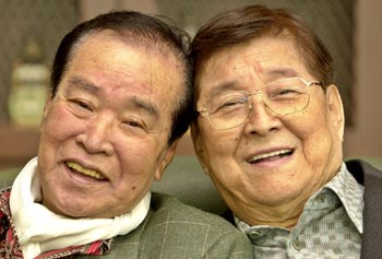 22일 서울 강남구 리베라호텔 커피숍에서 만난 ‘78살 동갑내기’ 원로 코미디언 구봉서 배삼룡씨는 만나자 마자 서로 ‘자식아, 이놈아’하면서 격이 없는 우정을 과시하며 웃음꽃을 피웠다.