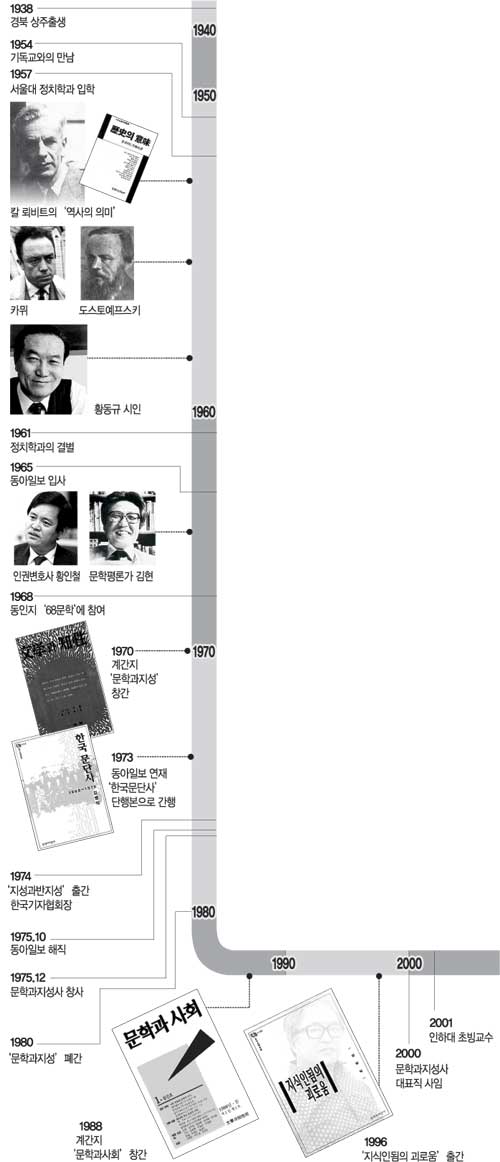 1970년 창간된 ‘문학과지성’은 김현과 황인철의 지원을 받으며 그가 운영을 맡은 것이었다. 그래서 그는 1990년대 초반에 세상을 떠난 이 두 사람이 “내게 좋은 일만 하고 먼저 갔다”며 늘 안타까워한다.