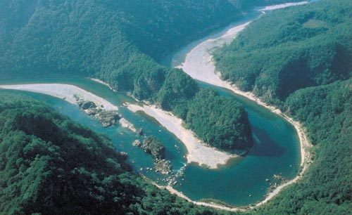 충주호까지 한강(남한강)은 강폭이 넓고 유속도 느린 도시 풍의 강. 반면 충주호 유입 부인 단양부터 영월까지 남한강은 폭은 넓어도 물살이 빠른 산골 풍의 강이다. 강변은 온통 자갈밭이고 주변에는 험준한 고개도 많다. 산세가 험한 만큼 유속도 빠르고 구비도 많다.