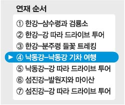 《낙동강(洛東江).낙동이란 ‘가락의 동편’을 말하는데 가락은 지금의 상주를 이른다.길이 변변찮았던 옛날,사람과 재화의 수송을 물에 의존하던 시절에 낙동강은 지금의 고속도로나 다름없는 주요 교통로였다.한국전쟁 중에는 최후 방어선으로 적화의 위기를 반전시켰던 역사의 강이다. 그 낙동강 상류를 이번에는 기차로 여행한다.》