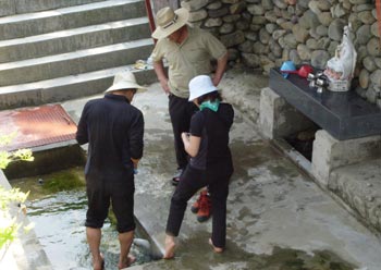 냉천은 여기서 100m 쯤 떨어진 김씨의 편의점 앞에 있다. 바위틈의 석간수인데 그 앞 파이프에서 쉼없이 물이 떨어진다. 같은 냉천이다. 그 파이프에서 나오는 물에 맨발을 대고 사람들이 내기를 하고 있었다. 냉천 물에 발을 대고 1분을 견디면 10만원을 준다는 것인데 성공하는 이가 없다. 수온은 영상3도. 얼음물처럼 차다.