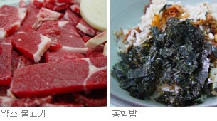 무공해 청정 섬 울릉도. 음식 또한 빼놓을 수 없다. 모든 것이 자연산이니 맛 또한 일품. 그 가운데 뭍사람이 그 특미를 가장 잘 구별해내는 것은 ‘약소 불고기’다. 약초 많은 울릉도에서 약초 먹여 키운 누렁이 한우 암소를 숯불에 구워내는데 서릿발 선 듯 점점이 기름진 등심이 특미. 초간장에 재운 울릉도 특산 ‘명이’나물에 싸먹는 맛 또한 특이하다. 도동항 앞 골목의 ‘울릉 약소 숯불 가든’(대표 김태정·054-791-0990)은 매번 도축한 소 한 마리를 통째로 가져와 부위별로 낸 약소 전문 식당이다. 다른 특미는 표 참조.