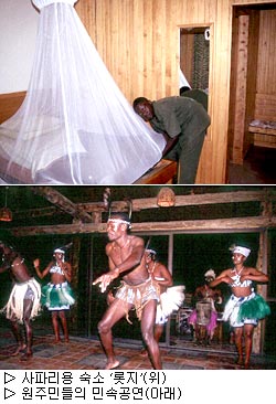 ‘롯지’라고 불리는 사파리용 숙소는 대부분 드넓은 국립공원 복판에 별장식으로 지어져서 매우 아늑한 분위기를 지니고 있다. 영화에서 보는 텐트식 롯지도 있다.
