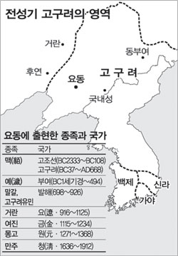 ▽종족과 언어가 달랐다=고구려의 주축이 된 인적 집단은 맥인(貊人)이었다. 여기에 예계(濊系)와 말갈 등이 포섭됐고, 평양 천도 이후 한계(韓系)가 포함됐다. 이 가운데 맥과 예계 및 말갈 등은 모두 요동 전역에 분포돼 있었고 한계는 한반도 중남부에 살았다. 따라서 고구려인은 중국인과는 동류의식을 가질 수 없었고, 한국인과도 천도 이전까지는 동류의식을 갖지 않았을 것이다.