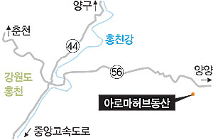 로마 허브동산은 개방한 지 1년이 조금 넘어 아직은 북적거림 없이 호젓하게 돌아볼 수 있다. 동산을 찾아가는 길도 한적하긴 마찬가지. 양평에서 인제 속초 방면으로 이어지는 44번 국도를 타고 가다 춘천 서석 IC를 빠져나오면 된다.