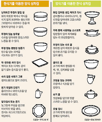 이 같은 파격은 이미 퓨전 레스토랑에서 쉽게 볼 수 있다. 식단이 퓨전식으로 다양해지면서 그릇 연출법도 달라지고 있는 것.