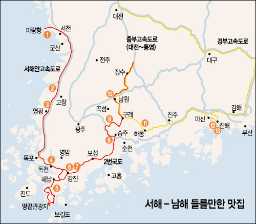 | 서해-남해 들를만한 맛집 | ||||