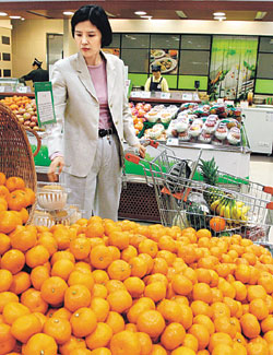 최영미씨가 집근처인 경기 고양시 일산 롯데백화점 지하 식품매자에서 채소를 고르고 있다. 최씨에게 음식은 생존의 수단을 넘어 삶의 목표이자 행복의 척도다. 이종승 기자 urisesang@donga.com