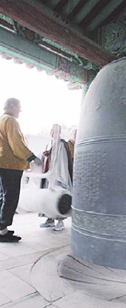 해가 뉘엿뉘엿 지면 고요한 산사에 종소리가 울려 퍼진다. 모든 중생들이 번뇌를 떨쳐버리고 해탈의 경지에 이르기를 기원하는 소리다. 이곳에선 직접 쳐볼 수 있다. 사찰에서는 보통 아침에 28번, 저녁에 33번 범종을 친다. 당(종을 치는 도구)을 세 차례 앞뒤로 움직이다 네 번째에 뒤로 당겼다 놓으면 ‘뎅∼’ 소리가 맑고 우렁차게 퍼진다.