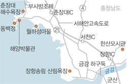 개펄에서 맛 잡기가 끝나면 마량리 동백나무숲도 둘러볼 만하다. 천연기념물로 지정된 수령 500년짜리 동백나무가 빽빽하게 들어찬 이곳은 동백의 북방한계선으로 남쪽에선 7m까지 자라지만 이곳에선 나무의 키가 2m를 넘지 못한다. 대신 오랜 세월을 말하듯 나뭇가지가 부챗살처럼 넓게 펼쳐져 있는 모습이 인상적이다.