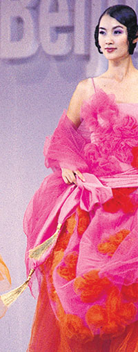 베일에 가려진 듯한 여성스러움을 사랑하는 그는 이번에 중국 전통 의상에서 영감을 얻어 로열 블루, 꽃분홍, 에메랄드 그린 등 7가지 색상으로 동양적 신비를 풀어냈다. 그의 쇼에 단골로 출연하는 고참 모델 이종희는 고급스러운 이미지로 이 역할을 자주 연기한다.