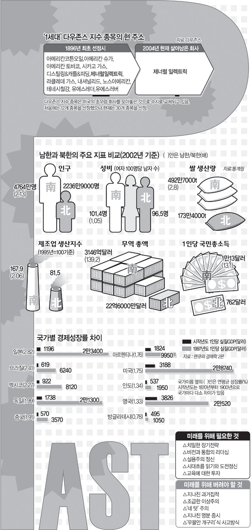 반면 남한은 외국 자본을 적극 끌어들이고 기업가 정신을 부추기는 등 활발한 개방 정책을 꾸준히 펼쳐 북한에 뒤졌던 경제 분야에서 대역전을 했다. 또 축적된 경제력을 바탕으로 정치적 민주화 등 다른 분야에서도 북한을 앞질렀다. 체제의 선택과 리더십의 방향이 명암을 결정적으로 가른 것이다.