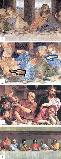 레오나르도 다빈치의 ‘최후의 만찬’은 이탈리아 산타마리아 델레 그라치에 수도원에 그려진 가로 880cm, 세로 460cm의 대형 벽화다. 제작된 지 500여년이 됐고 장소가 수도원 식당이다 보니 습기에 의해 심하게 훼손됐다. 그림을 둘러싼 논란은 수백년에 걸쳐 이뤄진 훼손과 수많은 덧칠과도 연관이 있다.
