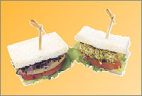 3. 식빵 위에 드레싱을 바르고 양상추, 피클, 고구마, 토마토, 새싹채소를 얹은 뒤 다른 빵으로 덮고 2등분해 낸다.