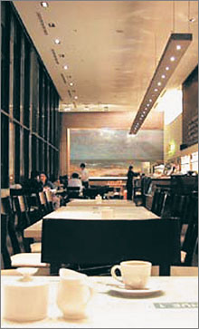 커다란 통유리창과 높은 천장, 심플한 인테리어가 시원한 느낌을 주는 이곳에서 부드러운 가을 햇살을 조명 삼아 책 한 권의 여유를 즐기다 출출해지면 차림표를 달라고 한다. 청담동의 케이크 카페 ‘슈크레’를 운영하는 요리연구가 공은숙씨가 선보이는 다양한 케이크를 비롯해 각종 샌드위치와 파스타 등이 준비돼 있다.