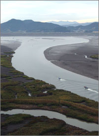 멀기만 했던 자연이 이만치 가까이 다가와 옴을 몸으로 느낄 수 있다. 개펄에서 물고기 사냥에 여념 없던 새들이 놀라 하늘로 날아오르는 퍼덕임 소리, 갈대밭 스치고 지나온 바람에 실려 오는 비릿한 바다냄새, 개펄 표면에 새겨진 아리아리한 물결무늬…. 어느 것 하나 사람 손이 닿은 것 없는 순수한 자연의 작품이다.