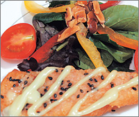 4. 야채를 손질해 드레싱을 얹은 후 알팔파를 조금 뿌려 함께 낸다.